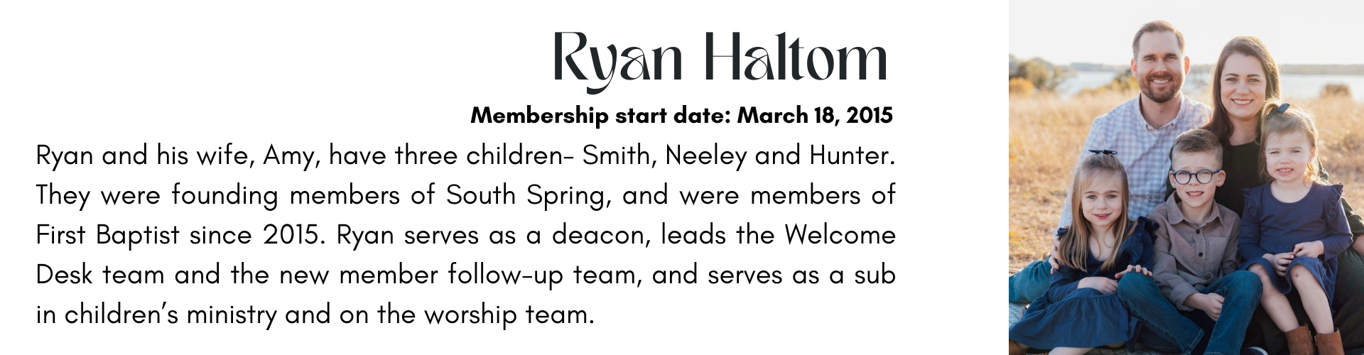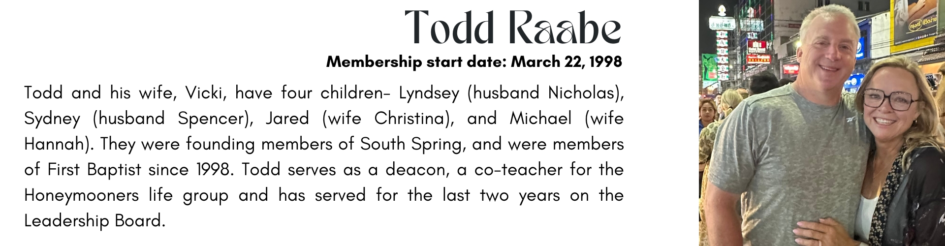 Below are the bios of our Leadership Board nominees for the upcoming vote on Sunday, March 16th, 2025. We encourage you to learn about them all, and then prayerfully consider for whom you will vote.