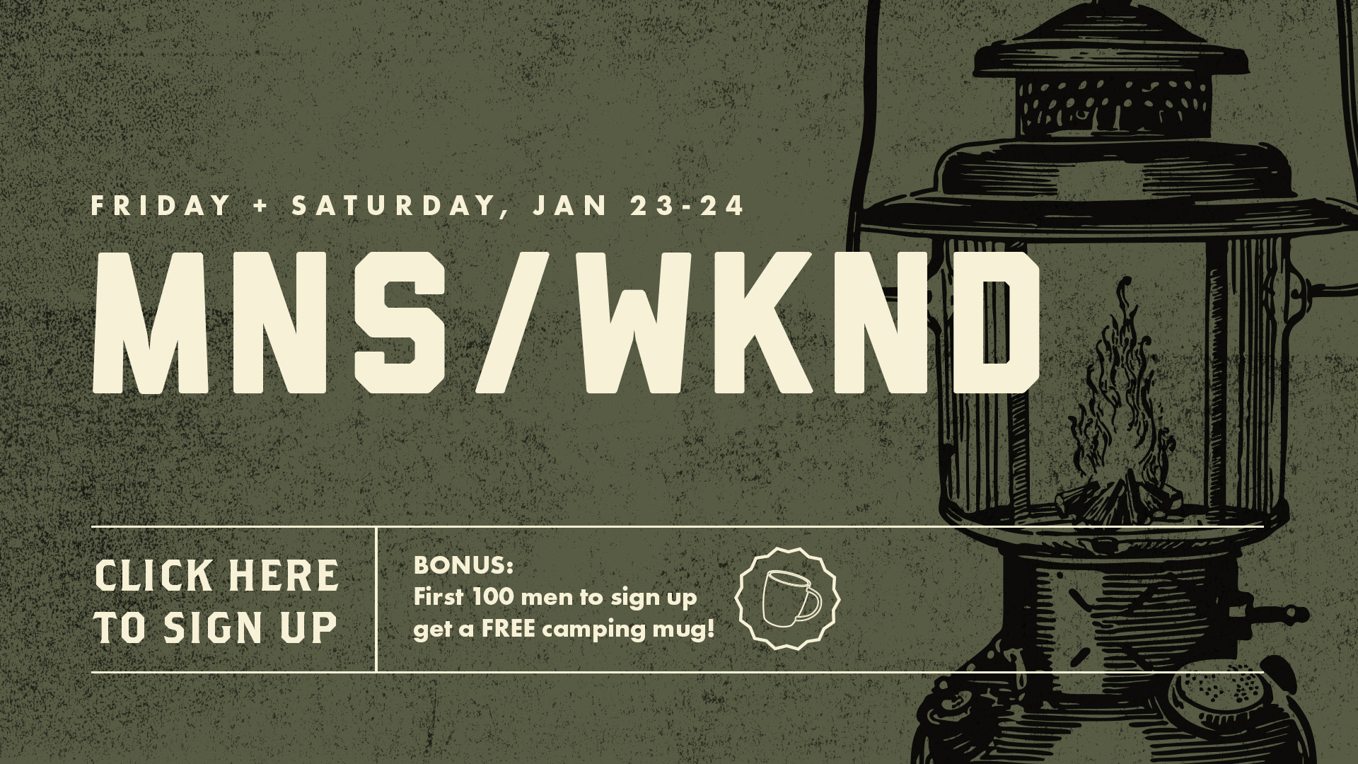 BONUS: First 100 men get a double walled camping mug!
